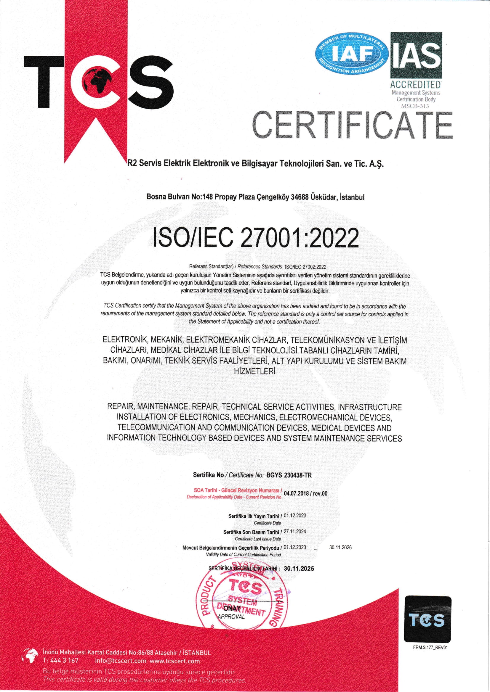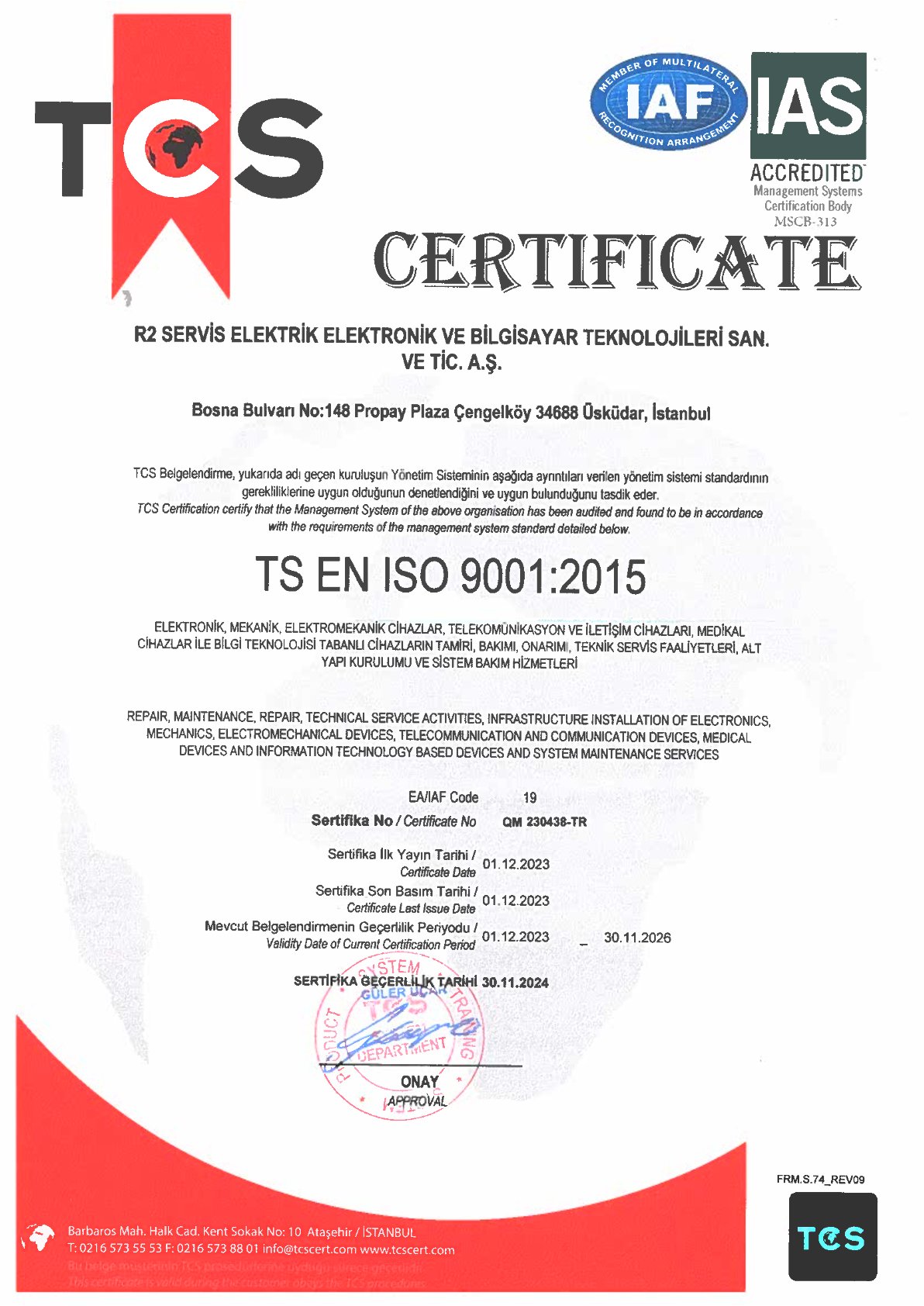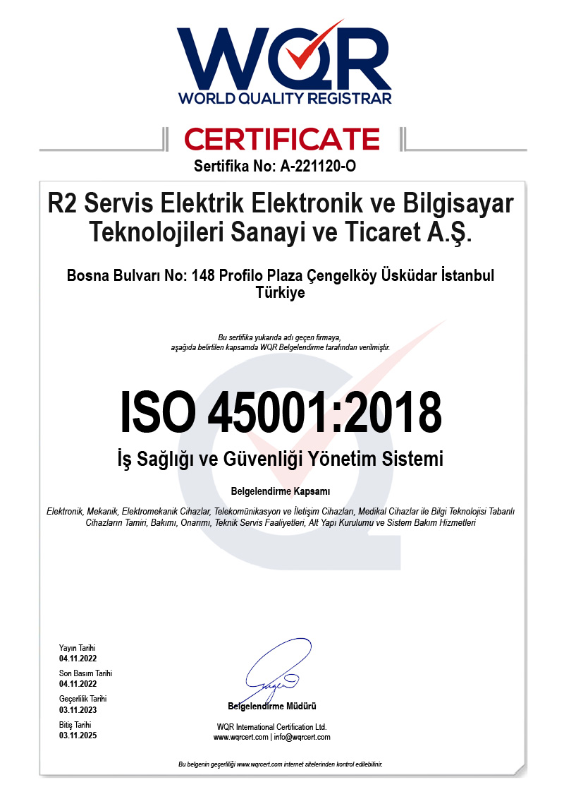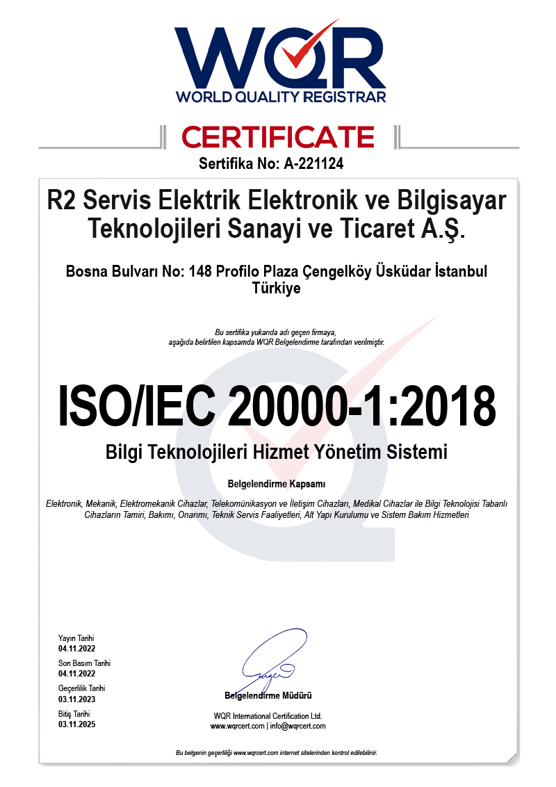 Belgelendirme Kapsamı: Elektronik, Mekanik, Elektromekanik Cihazlar, Telekomünikasyon ve İletişim Cihazları, Medikal Cihazlar ile Bilgi Teknolojisi Tabanlı Cihazların Tamiri, Bakımı, Onarımı, Teknik Servis Faaliyetleri, Alt Yapı Kurulumu ve Sistem Bakım Hizmetleri