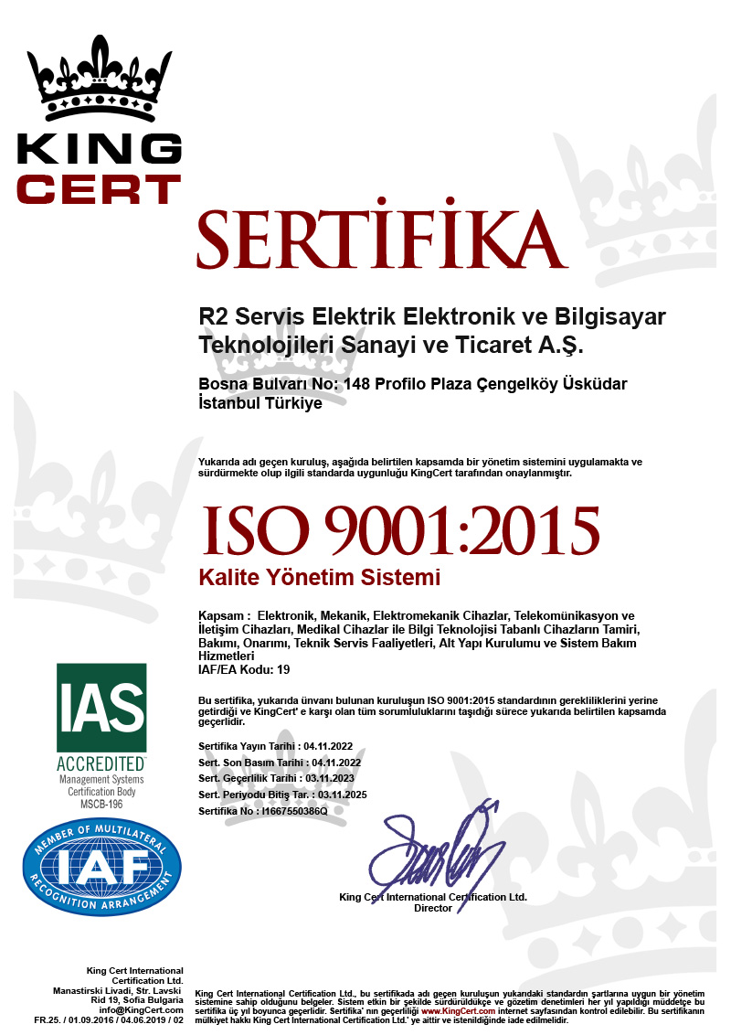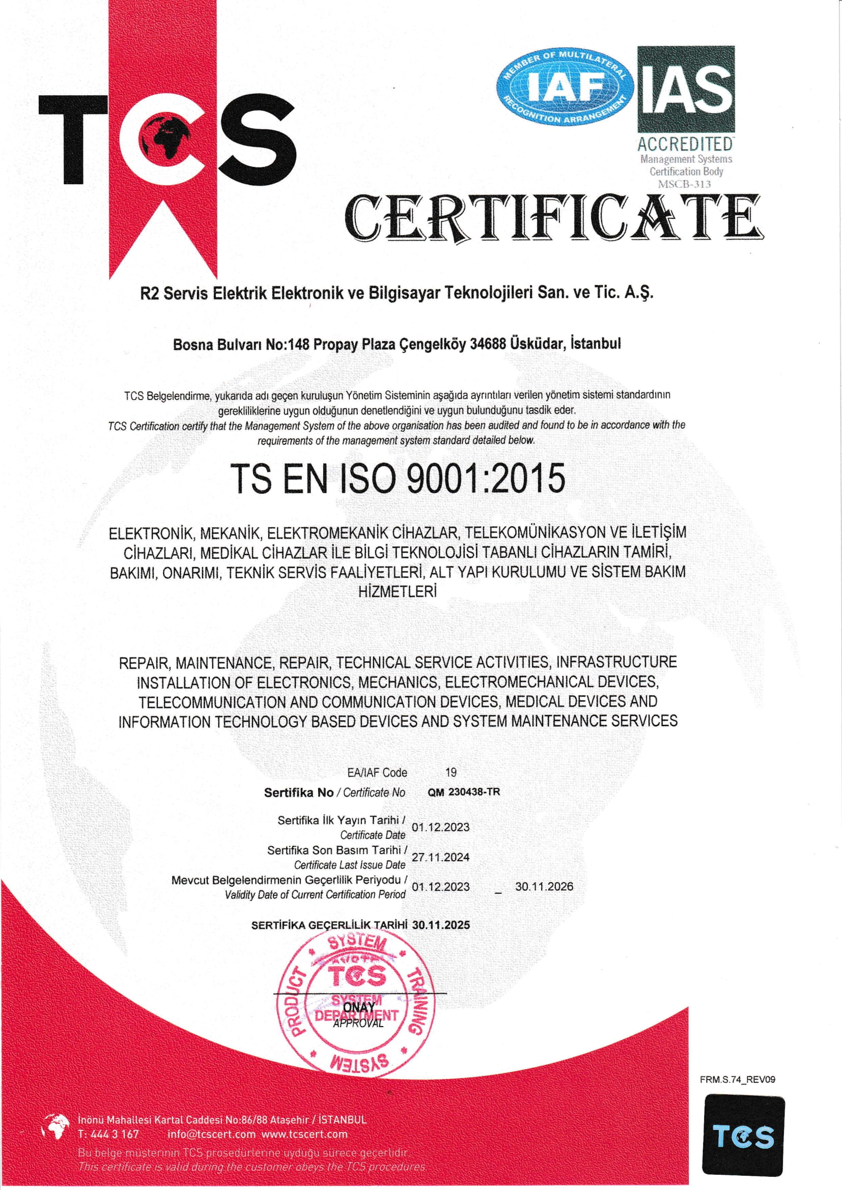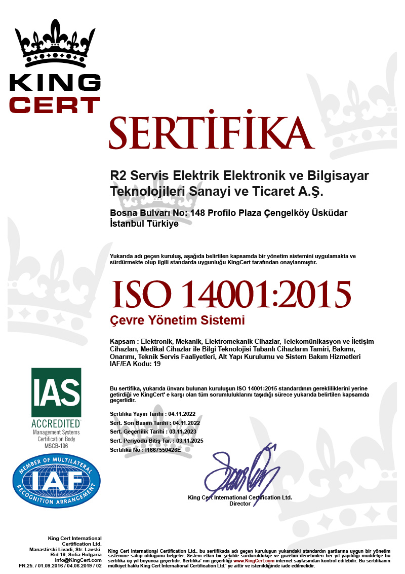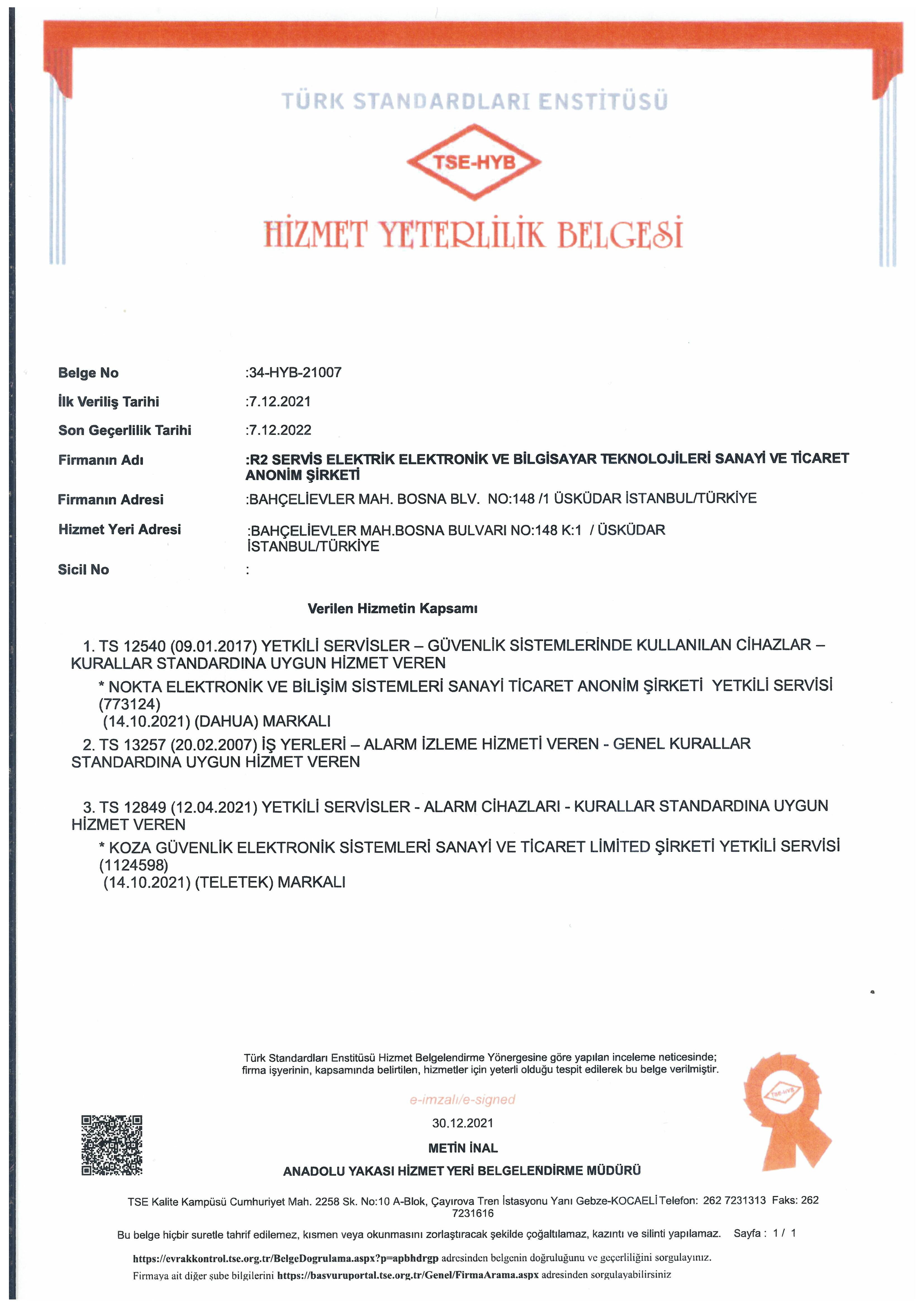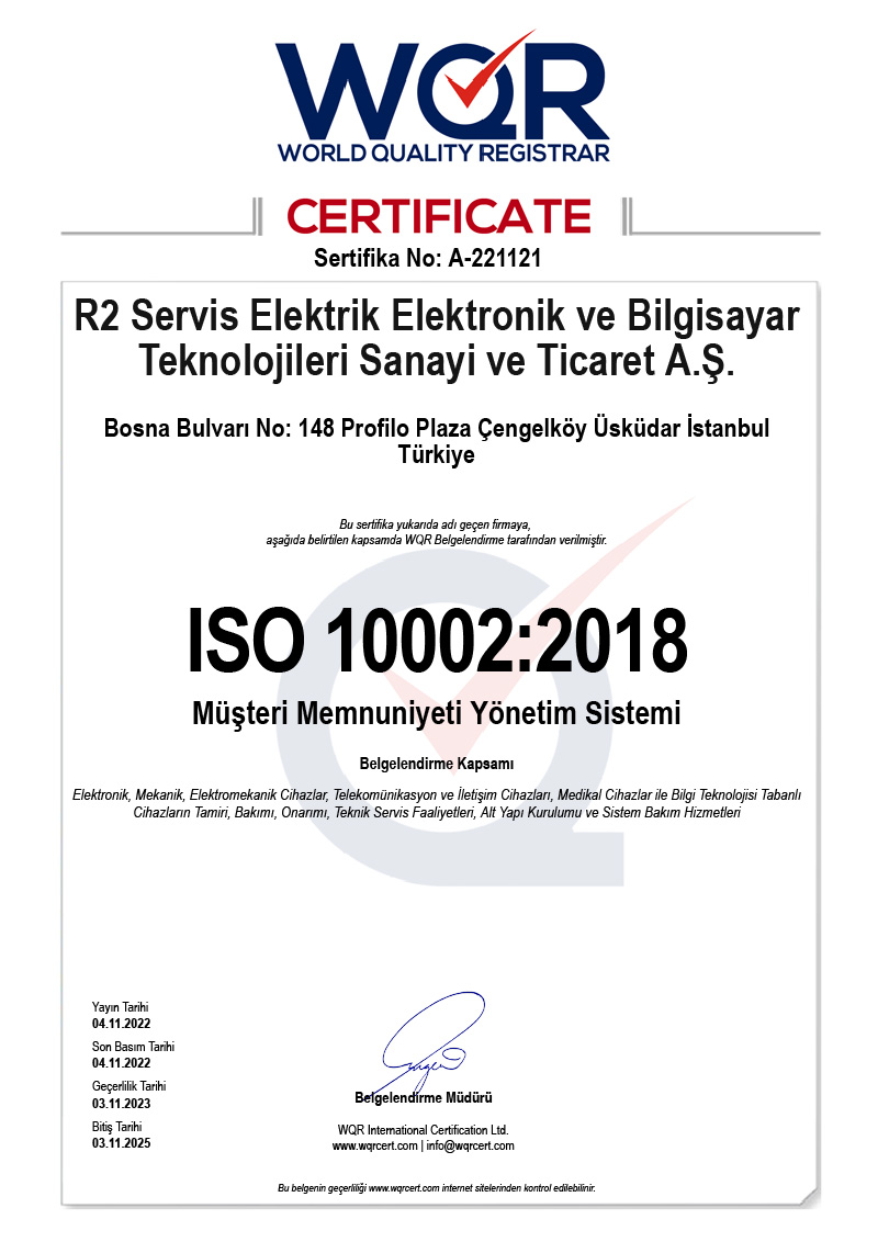 Belgelendirme Kapsamı: Elektronik, Mekanik, Elektromekanik Cihazlar, Telekomünikasyon ve İletişim Cihazları, Medikal Cihazlar ile Bilgi Teknolojisi Tabanlı Cihazların Tamiri, Bakımı, Onarımı, Teknik Servis Faaliyetleri, Alt Yapı Kurulumu ve Sistem Bakım Hizmetleri