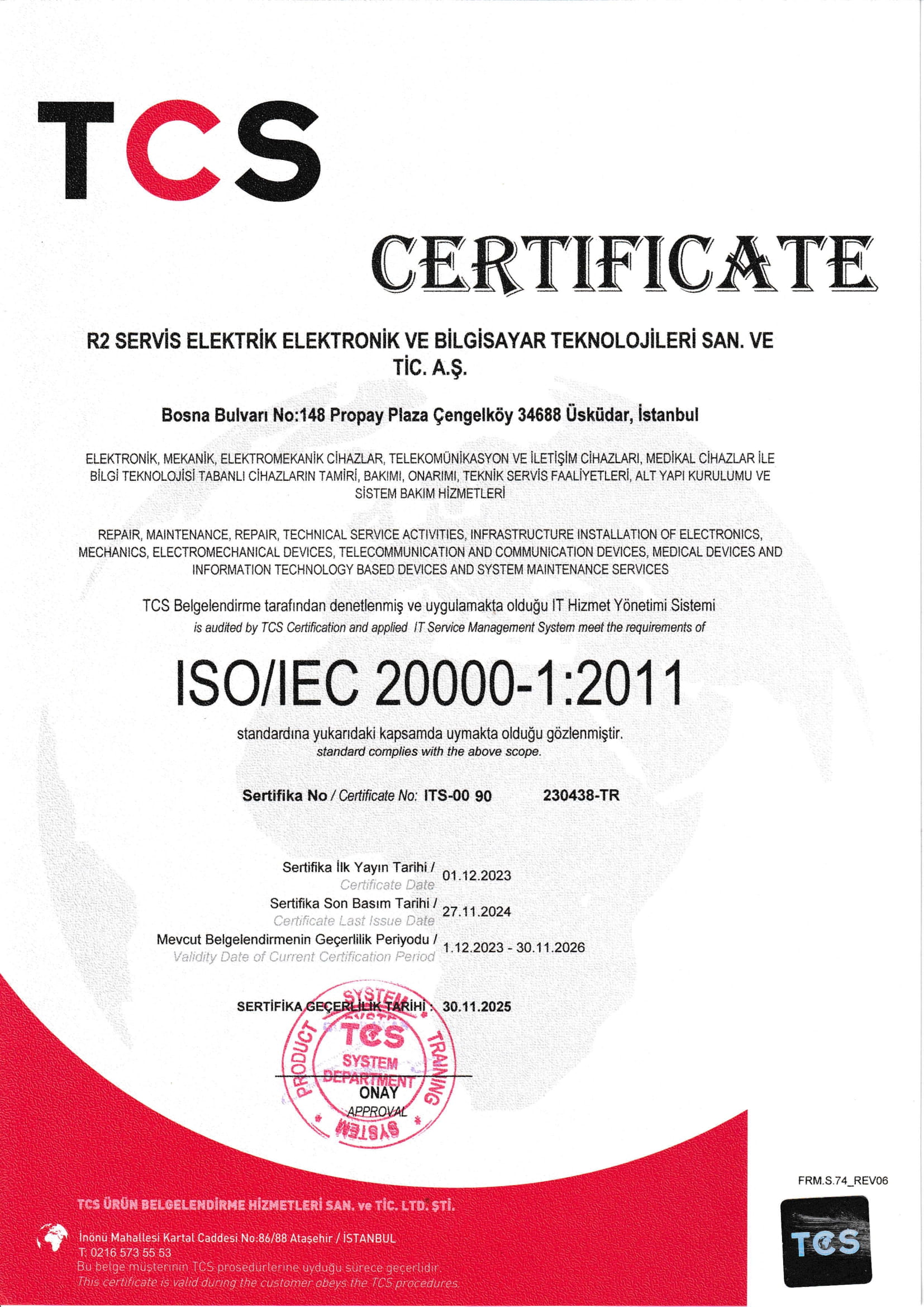 ISO/IEC 20000:2011Yeterlilik Belgesi