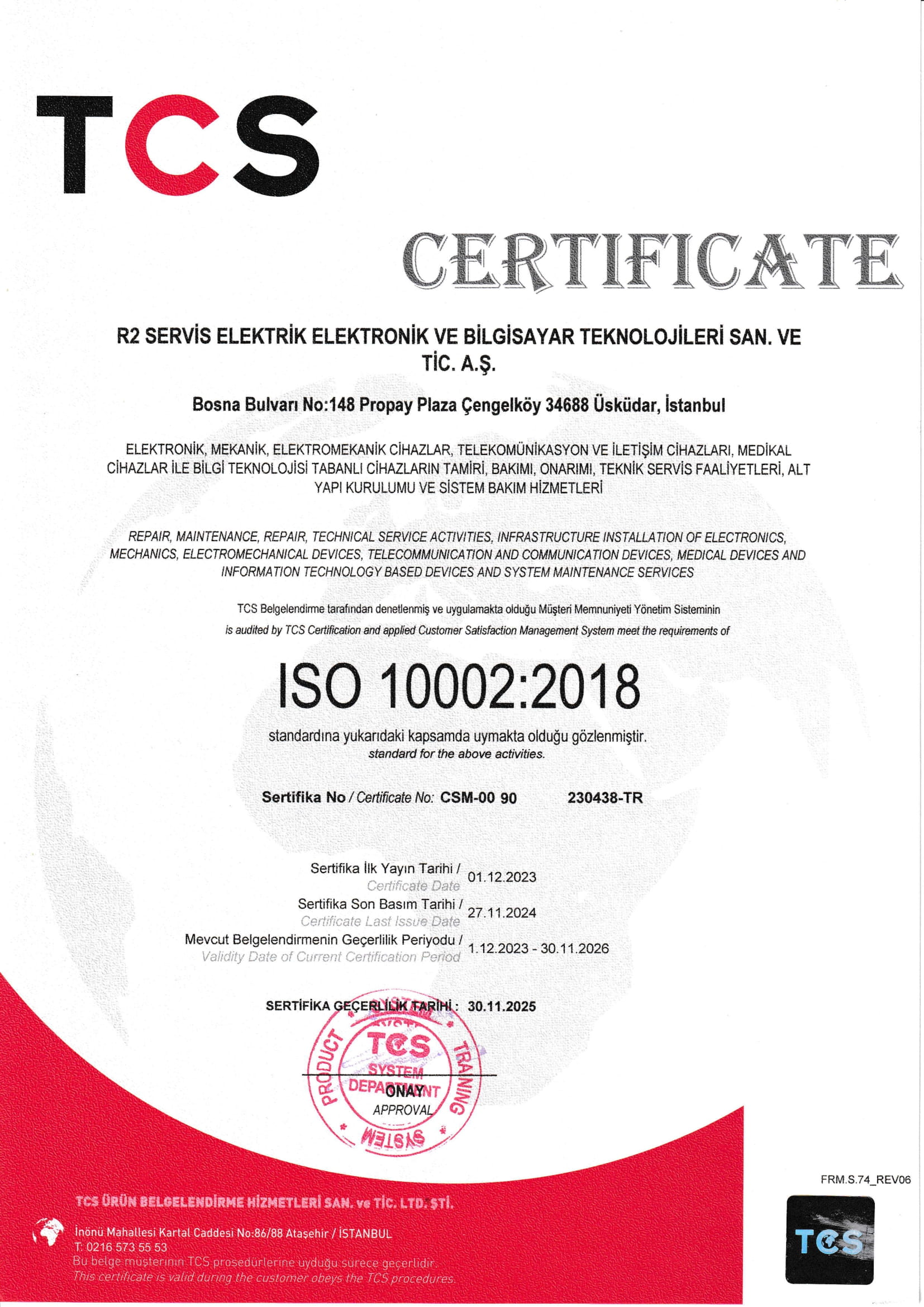ISO 10002:2018 Müşteri Memnuniyeti Yönetim Sistemi