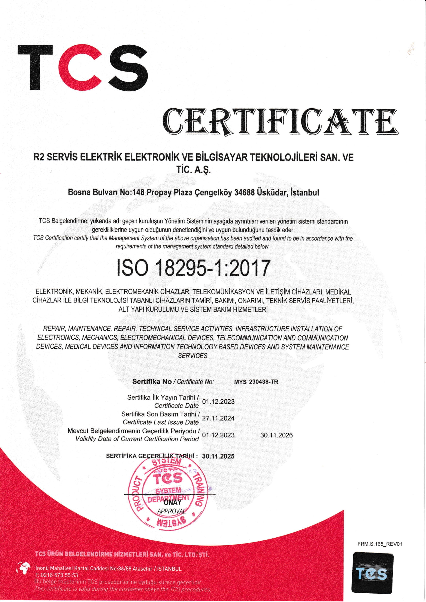 ISO 18295:-1:2017 Yeterlilik Belgesi