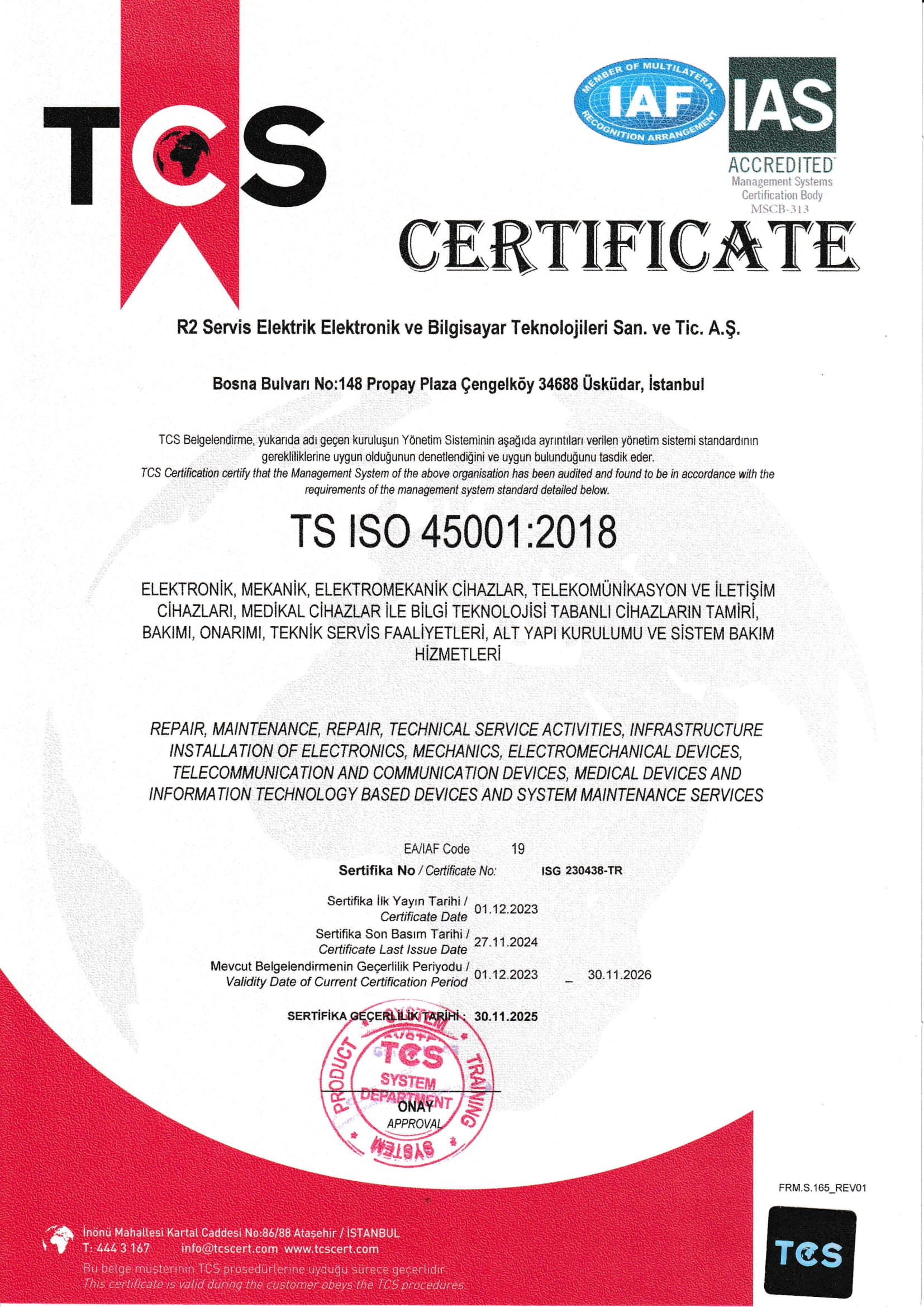 ISO 45001:2018 İş Sağlığı ve ve Güvenliği Yönetim Sistemi